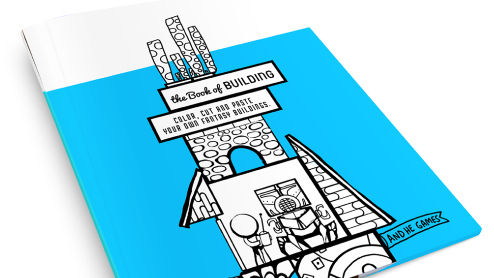 The Book of Building is a completely unique coloring book – 36 pages of building pieces, doorways, windows, planters, rooms, columns (not to mention dragons, giant robots, and rockets), ready for you to color and cut out of the book.